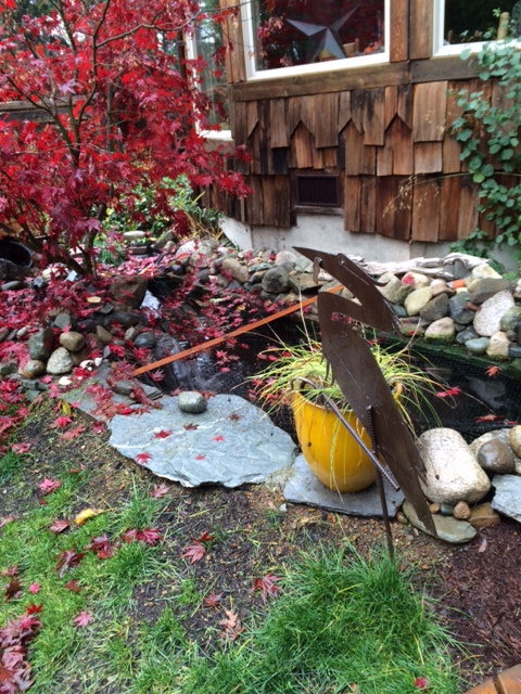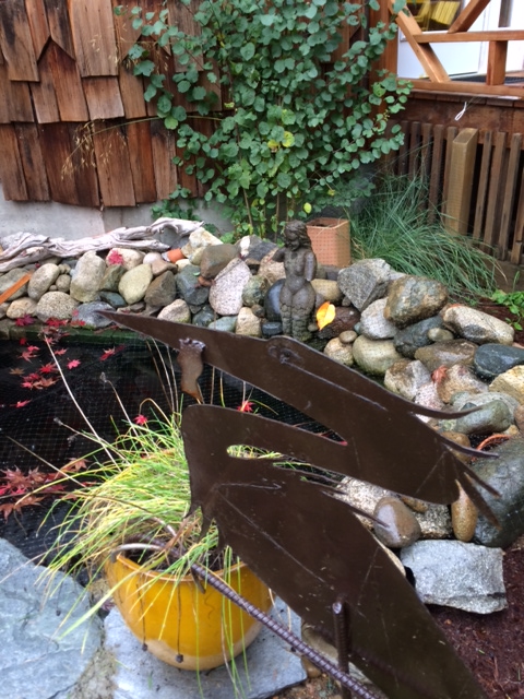 Over the past summer I decided to enlarge a very small pond into a larger fish pond with a waterfall – big enough to have some Koi call it home. The construction was an experience in itself utilizing a rented backhoe and miraculously doing minimal damage. Altho’ I have to confess to inadvertently taking out a corner of the septic field and guillotining a young tree I planted when I hit the wrong lever and flipped the bucket forward with such force that it killed the plant instantly. Moral of the story; mistakes are part of creativity and even faith in action involves risk.