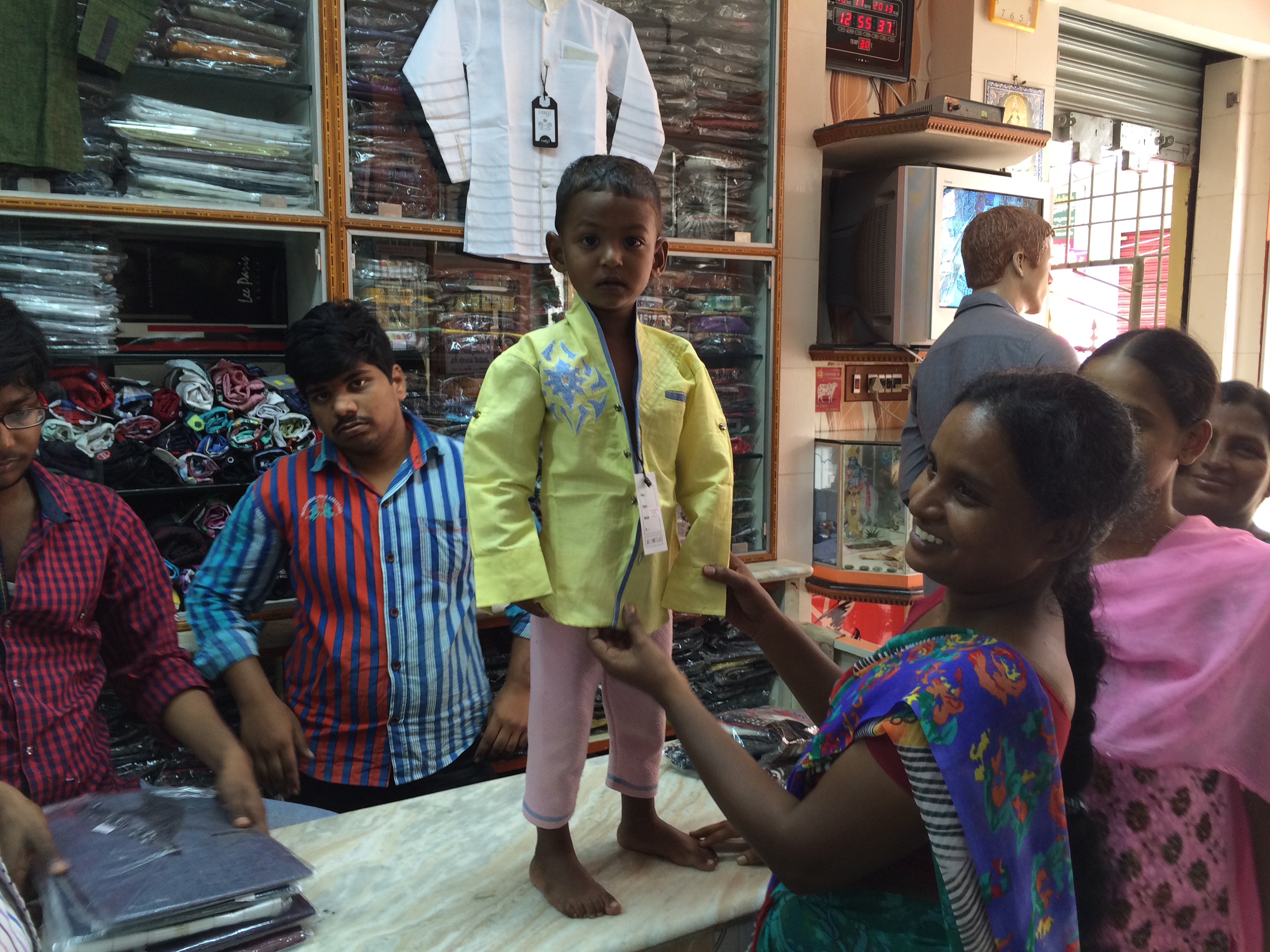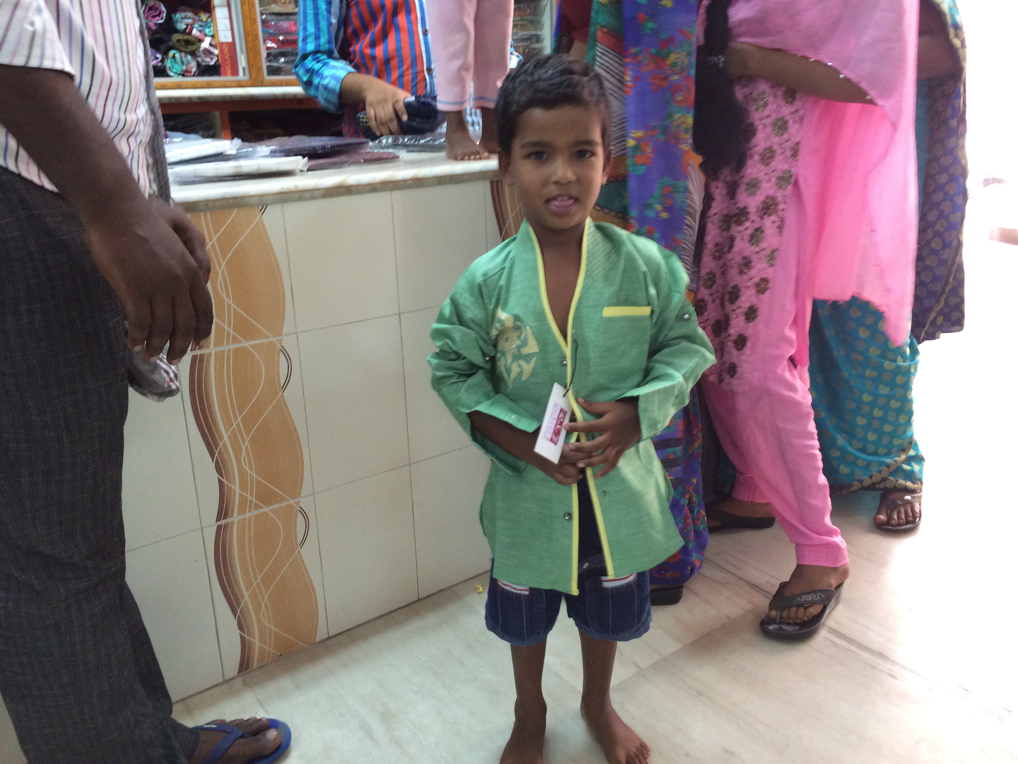 Our mission in shopping was to buy as much of the wish list as possible…. the total we calculated was under $1,000. First stop was the saris so that the women could return by bus before the children finished school. You enter a small store, first removing your shoes, and then review items until the choice is made. It was one of the most moving moments to see their excitement and joy – these items only cost about $35 each. Then we went to a children’s store and bought clothes for Rau’s two sons.