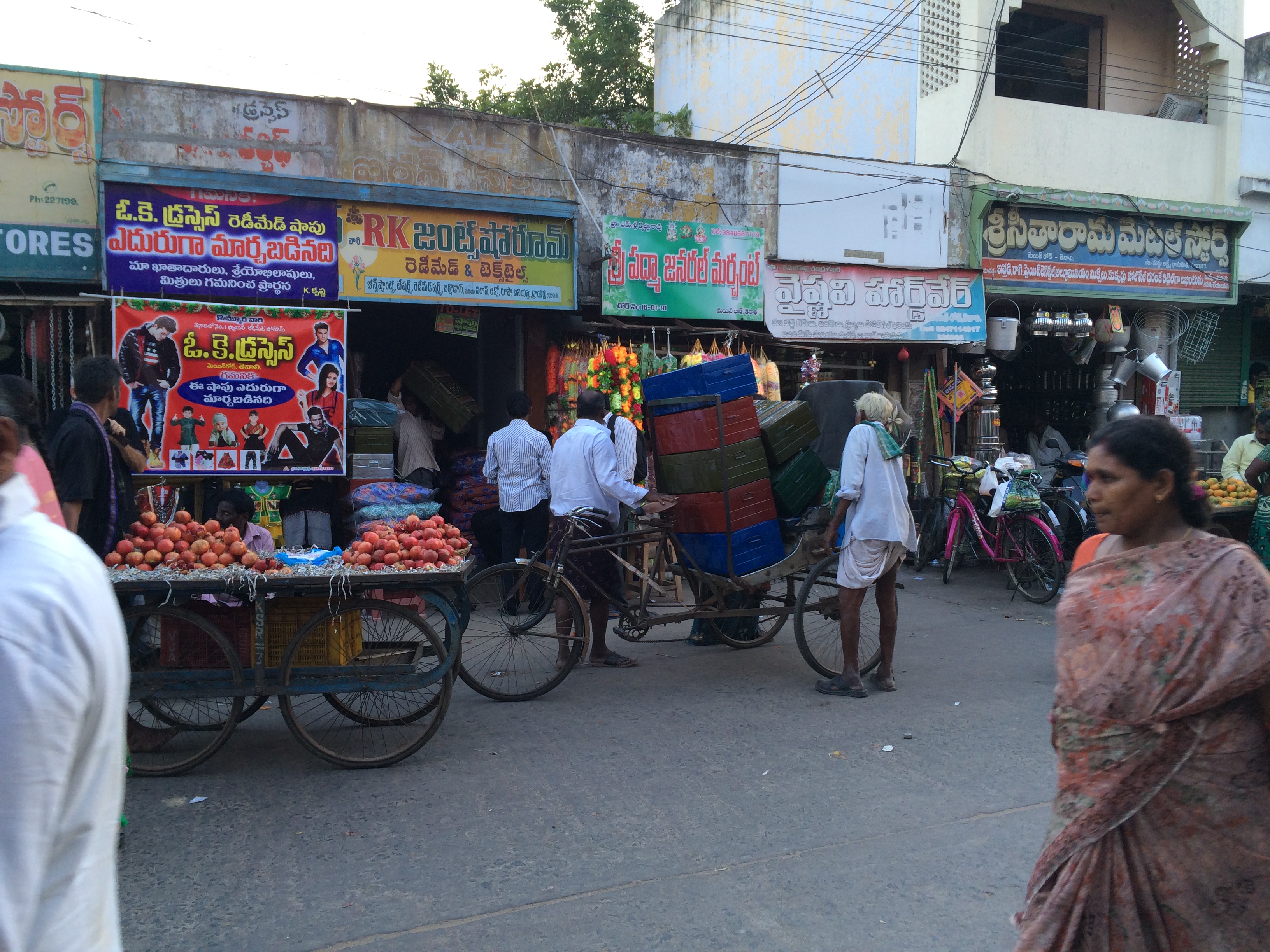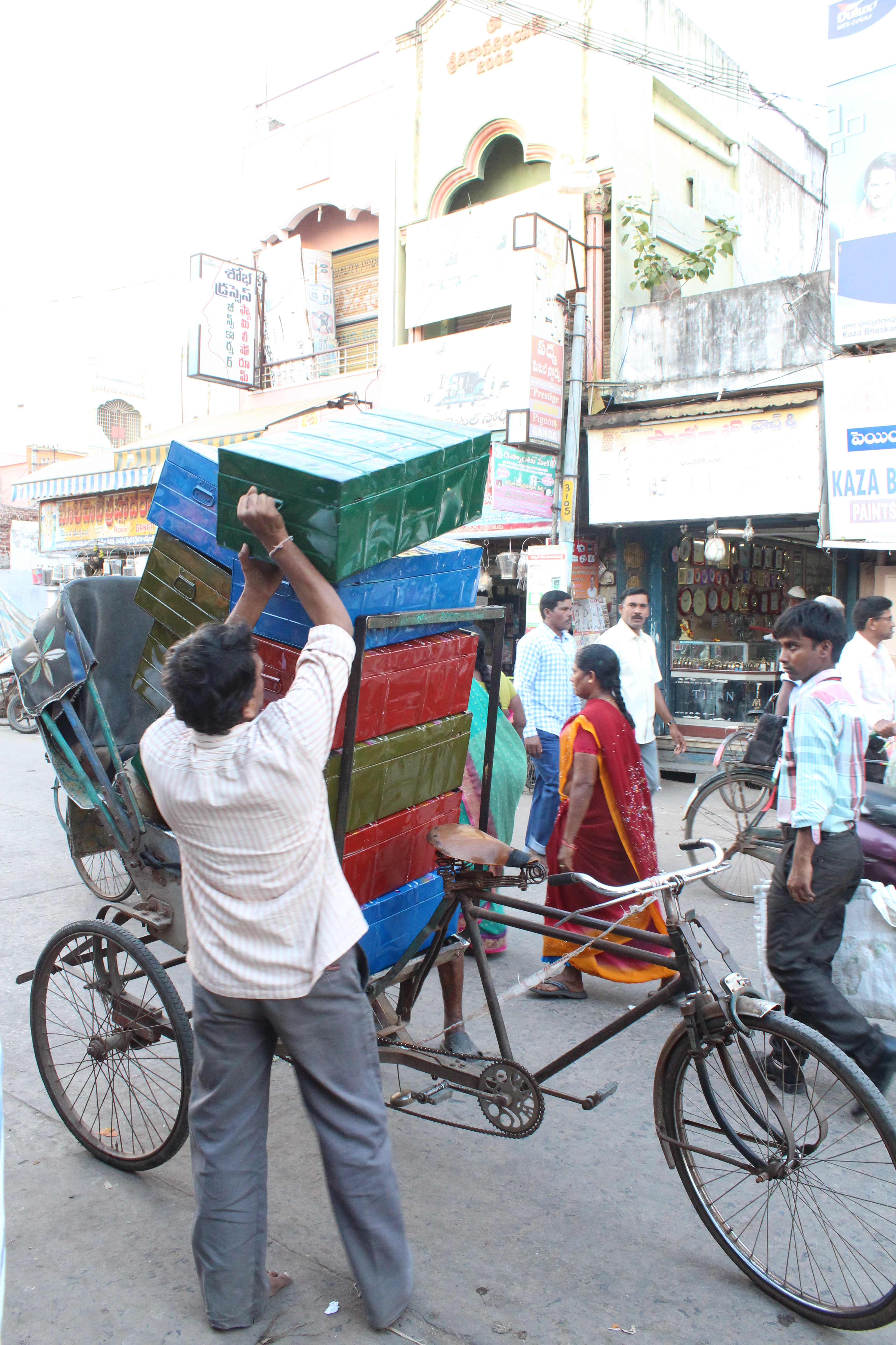 Driving is a survival sport that includes overtaking anyone in sight, just missing pedestrians, children, cows, dogs, bicycles and whatever else strays into the road. In villages everyone drives and the first one to hesitate loses right of way. Of course the British must have said that the engine will cut out if you don’t honk your horn every 15 seconds…. so the noise level is a cacophony (lovely word) of sound all around. There are millions of people everywhere plying there trade and occupying space to eke out a living. Others wheel their wares around and the sound of voices competes with the vehicles to make for a bustling of life unheard of in the west. No big shopping malls but small business owners offering food, bicycles, cooking utensils and everything you can imagine…. seems to me if we take away the motorized transport this is how the world lived until 200 years ago. It feels like stepping back into biblical times where communication and community are valued. There’s no real rush or urgency… no sense of violence or danger at all…. just a beautiful chaos and gentle friendliness.