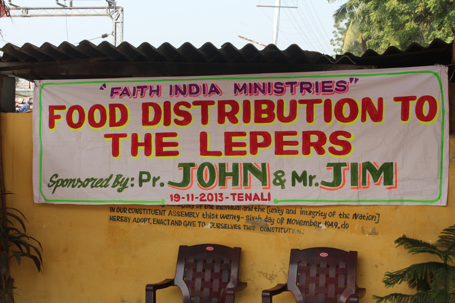 Today we drove back to Tenali where it had been arranged to meet a group of lepers and share the love of Jesus with them. Sanjeeva and his family have never dome this before because there were not resources. So some of the funds from Jericho Road made it possible to put together twenty care packages of rice, lentils, and oil to distribute. The meeting point was near the railway and the leader of the group brought the exact number of people with him to receive the gifts we had. It is hoped that perhaps this gathering together could happen on a monthly basis in the future.