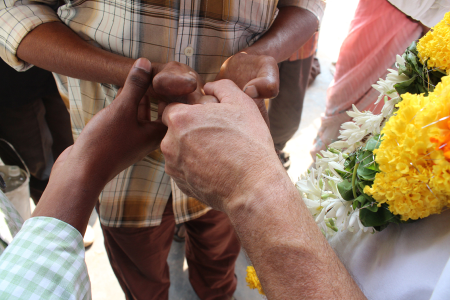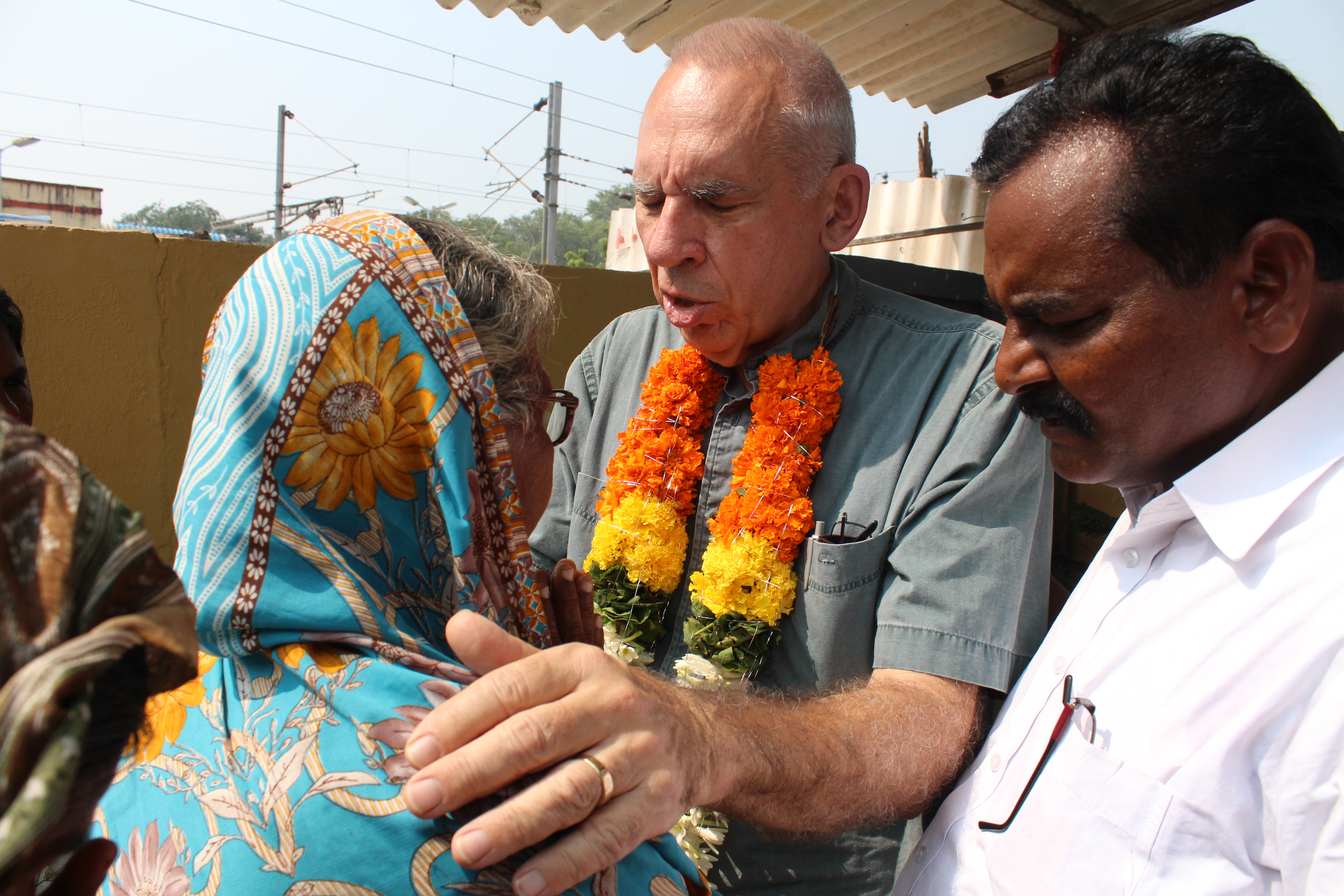 Jim and I were warmly welcomed and thanked with a presentation of garlands and then it was sprung on me to say a few words about the love of Jesus. I was glad to do so and after a few words we laid hands on each person praying over them for healing and God’s kingdom to overflow love and presence in their hearts. Again this is a time I long to say that fingers grew out of stubs and feet were straightened and healed… and who knows what God has done and will do? All I know is that we will never see anything unless we reach out to those in front of us and start there declaring his grace and power for all – without favorites and without exception.