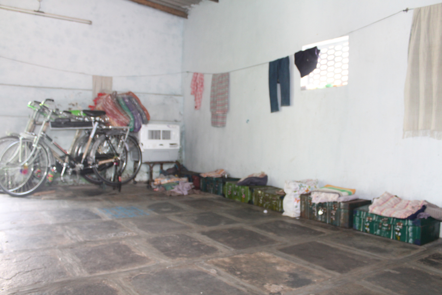 Inside main room – where new bicycles are on display and where boys sleep