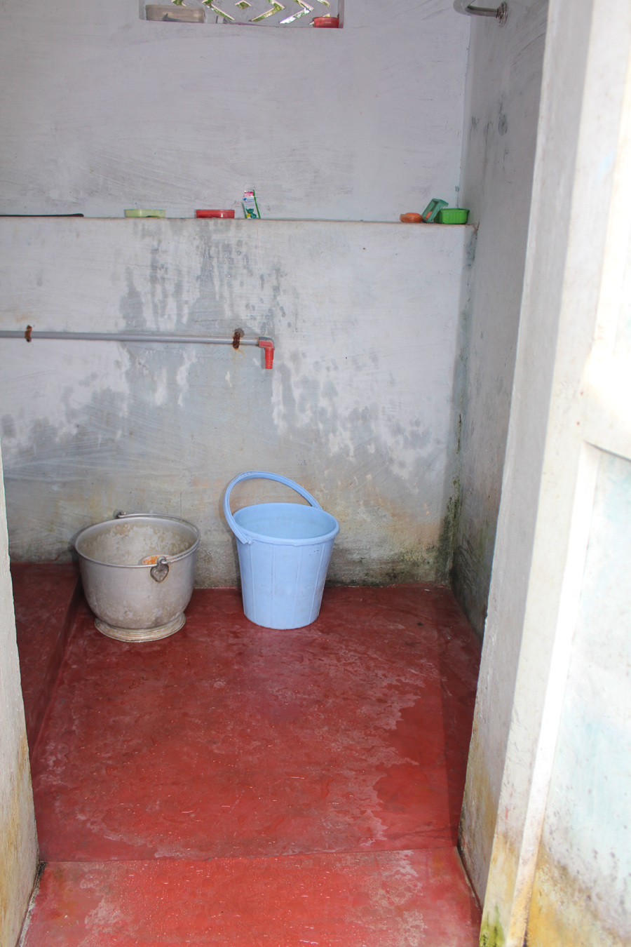 Back yard…. washing up of plates etc. Water pump is here and on one end the ‘washrooms’