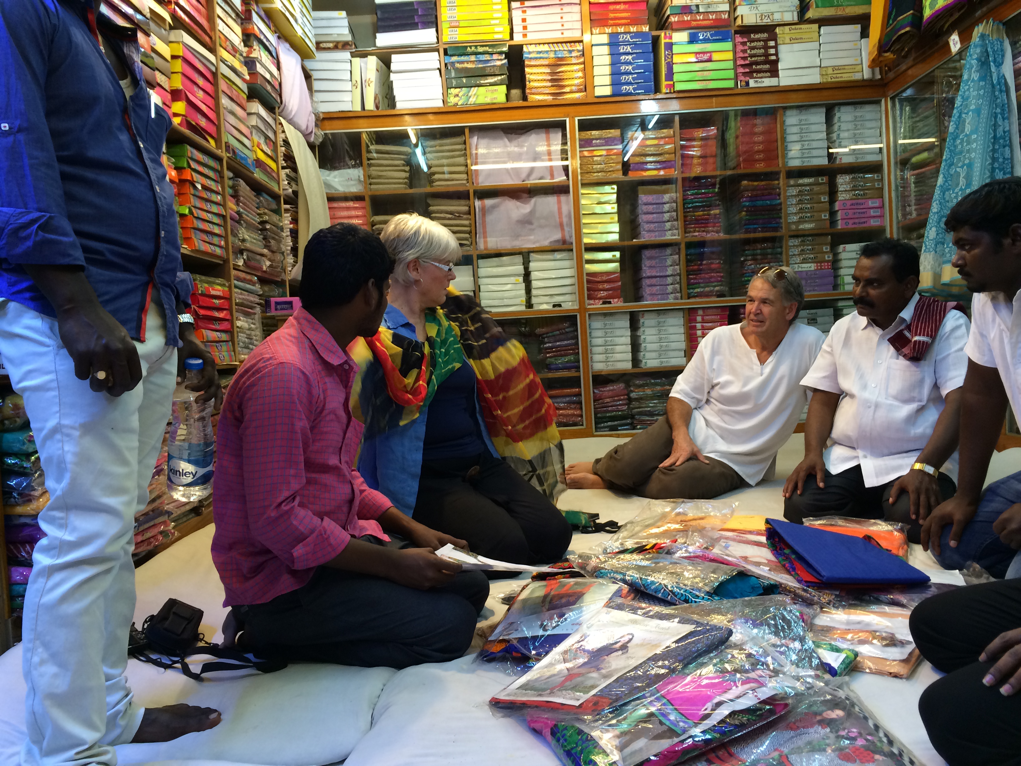 Today we headed over to the bustling town of Tenali to be fitted with shirts and trousers for the conference… a gesture of thanks that we cannot refuse. Jan was offered a sari and experienced the pleasure of being surrounded by men as we sat in a circle having the many options displayed. This is a culture that we lost maybe 100 years ago… the time when there were multiple jobs and skills to generate a service and an income. One shop sold the cloth, another took the measurements and handmade the shirts, trousers, and sari with great skill.