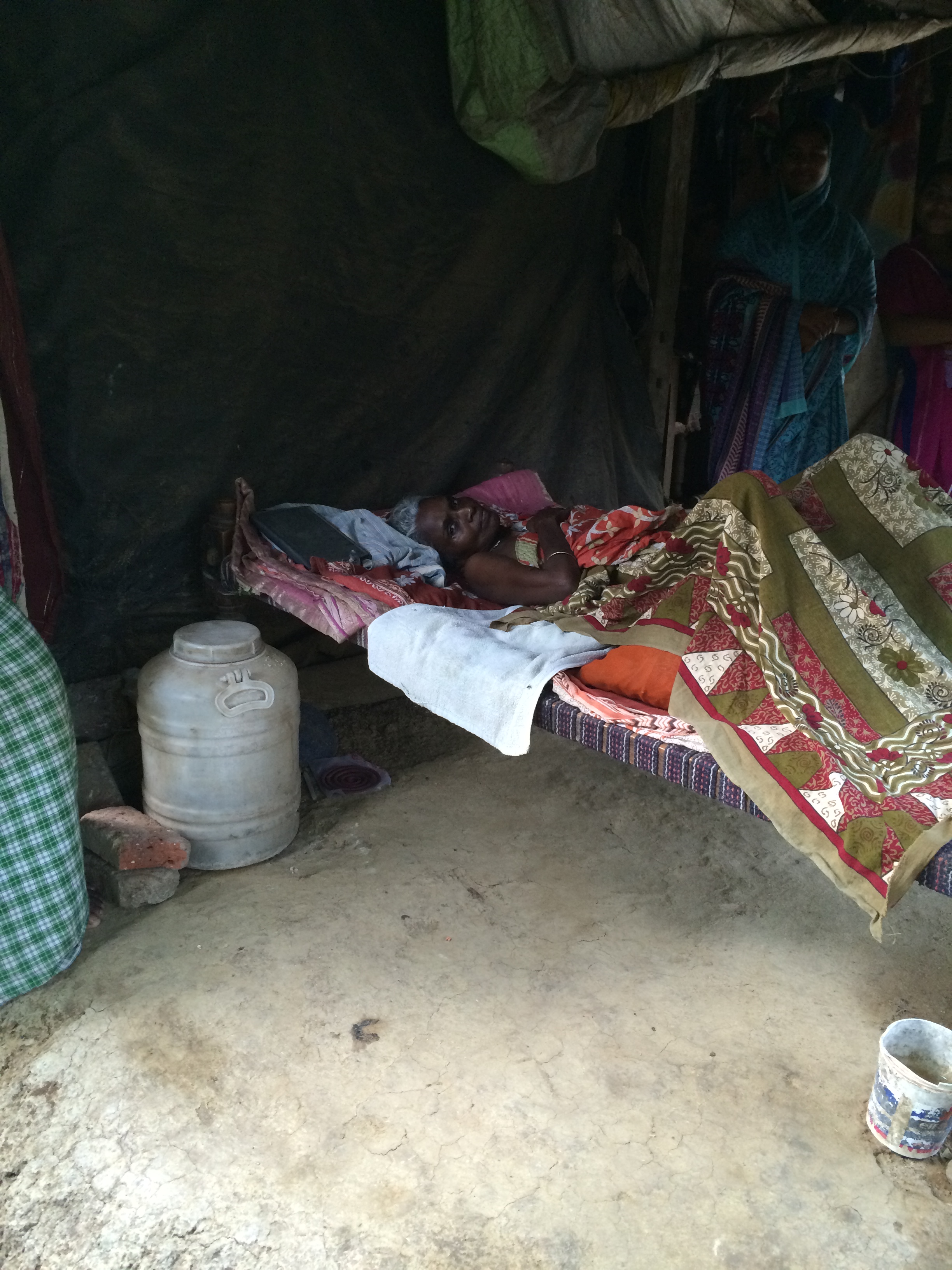At the end we were asked to visit the house of a very sick women. We’d just been looking at the site for the crusade wen Rau asked me to go to the house at the request of a member of her family. This is common and normal here and the Biblical similarity is not lost. Jesus being on his way somewhere and interrupted…. When we arrived at the palm-frond-thatched home a woman was lying on a bed under the front porch in the open air. She had a withered left hand and I was told she hadn’t moved from that bed in over a year. I think she needed people to sit at her bedside for a few hours and pray but we only had a few minutes. I felt so inadequate as I declared God’s love and presence over her and spoke his healing presence into her for renewed life and an end to this situation. I prayed that God would perform a miracle so she could attend the Crusade – and asked permission to take a photograph so that I could encourage you to join us in prayer…. her name is Sheshamma.