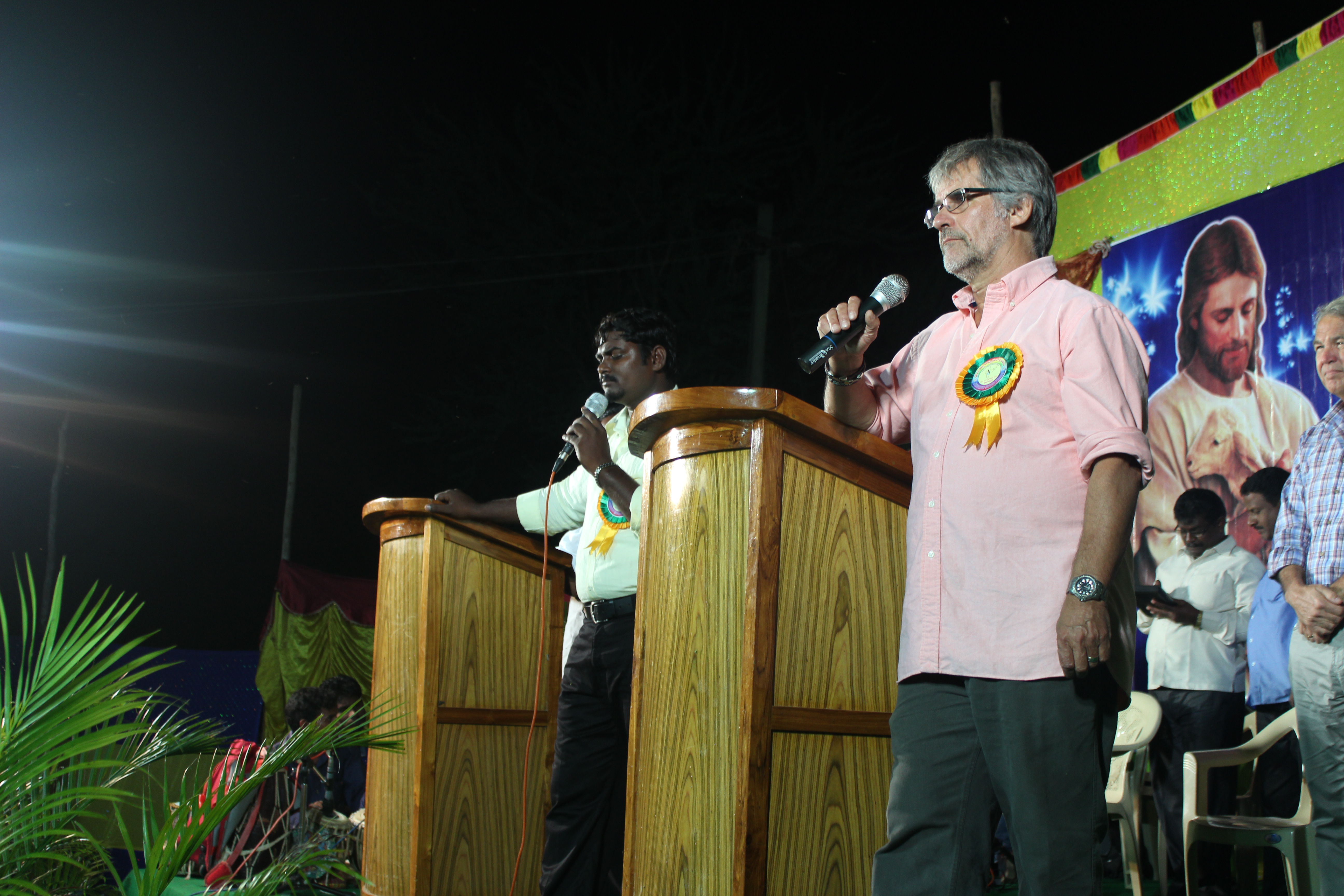 When we noted that the Crusade last night seemed to contain many believers…(about 800) Rau explained that the loud broadcast system is the way they reach the audience in the village who will not come into the arena. That audience is the large Hindu population within earshot…, and they are the ones who our words are reaching out to – inviting them into a relationship with the love and hope of Jesus who sets them free from the treadmill. Imagine hearing for the first time that God loves you and has provided all that is required for you to know his affirmation now… and that there is a place for you in heaven and only one death.