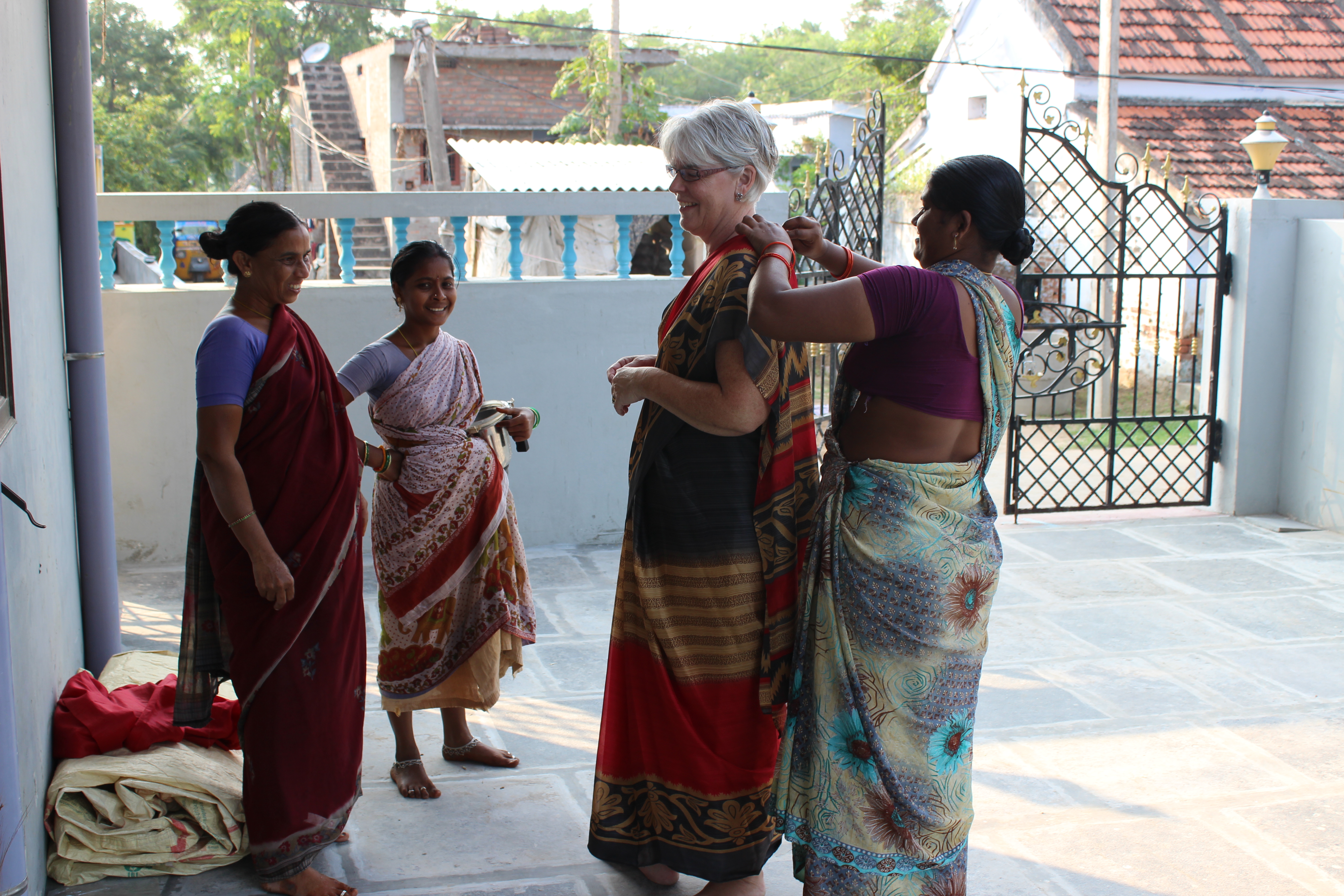 Jan has spent hours being dressed in saris and a Punjabi sari (has trousers) will the local women helping fix every angle….. thrilled that she was sharing their cultural heritage.