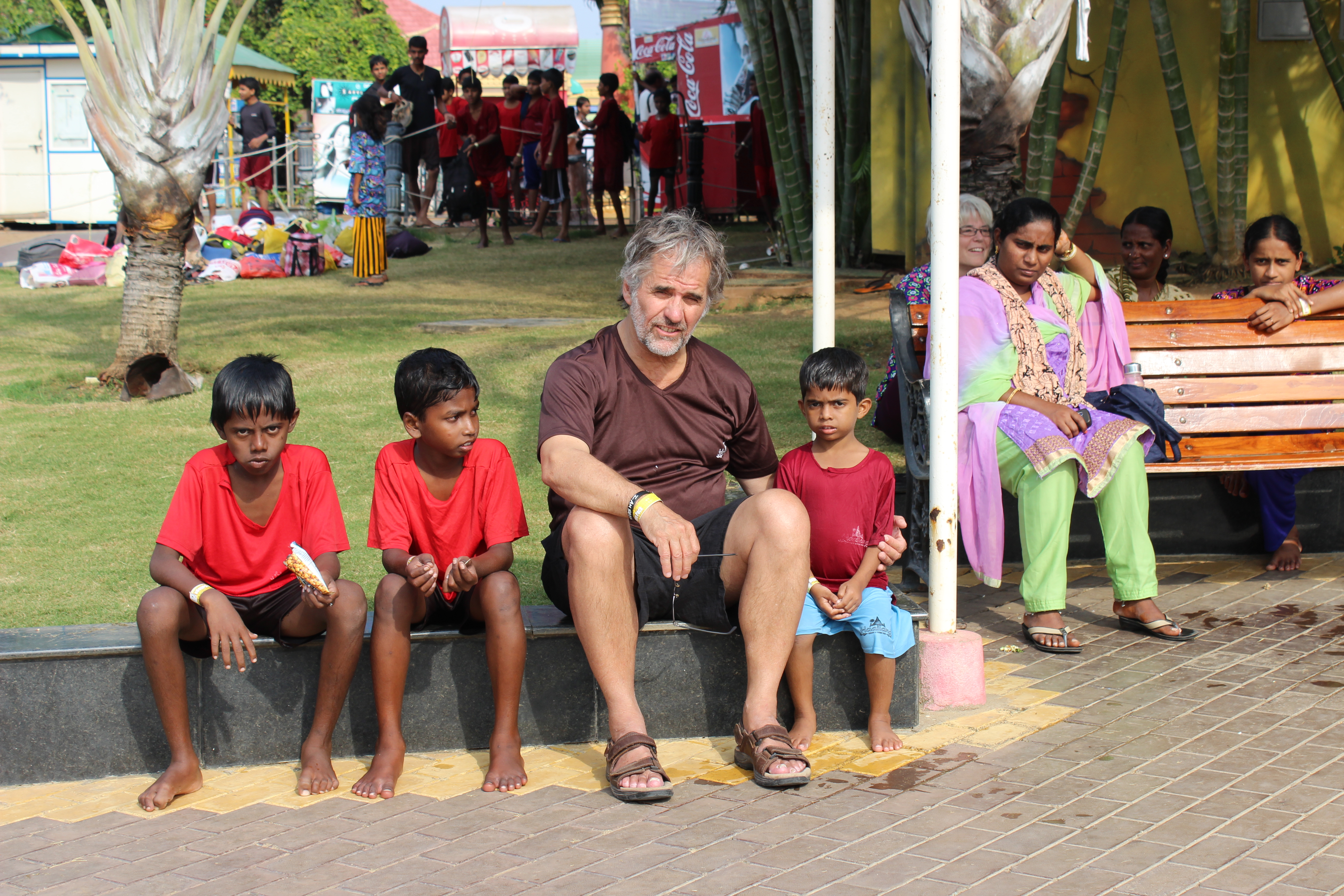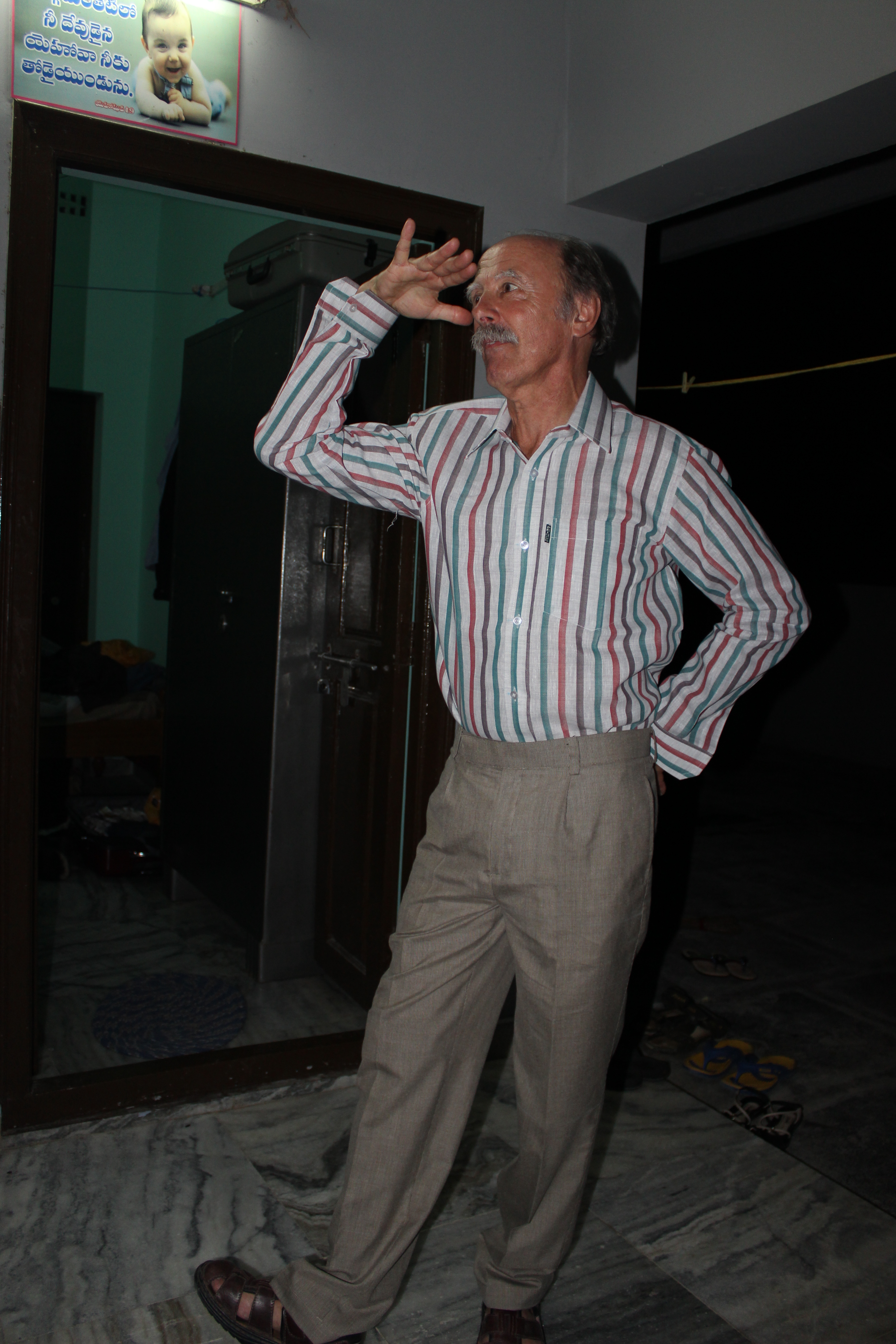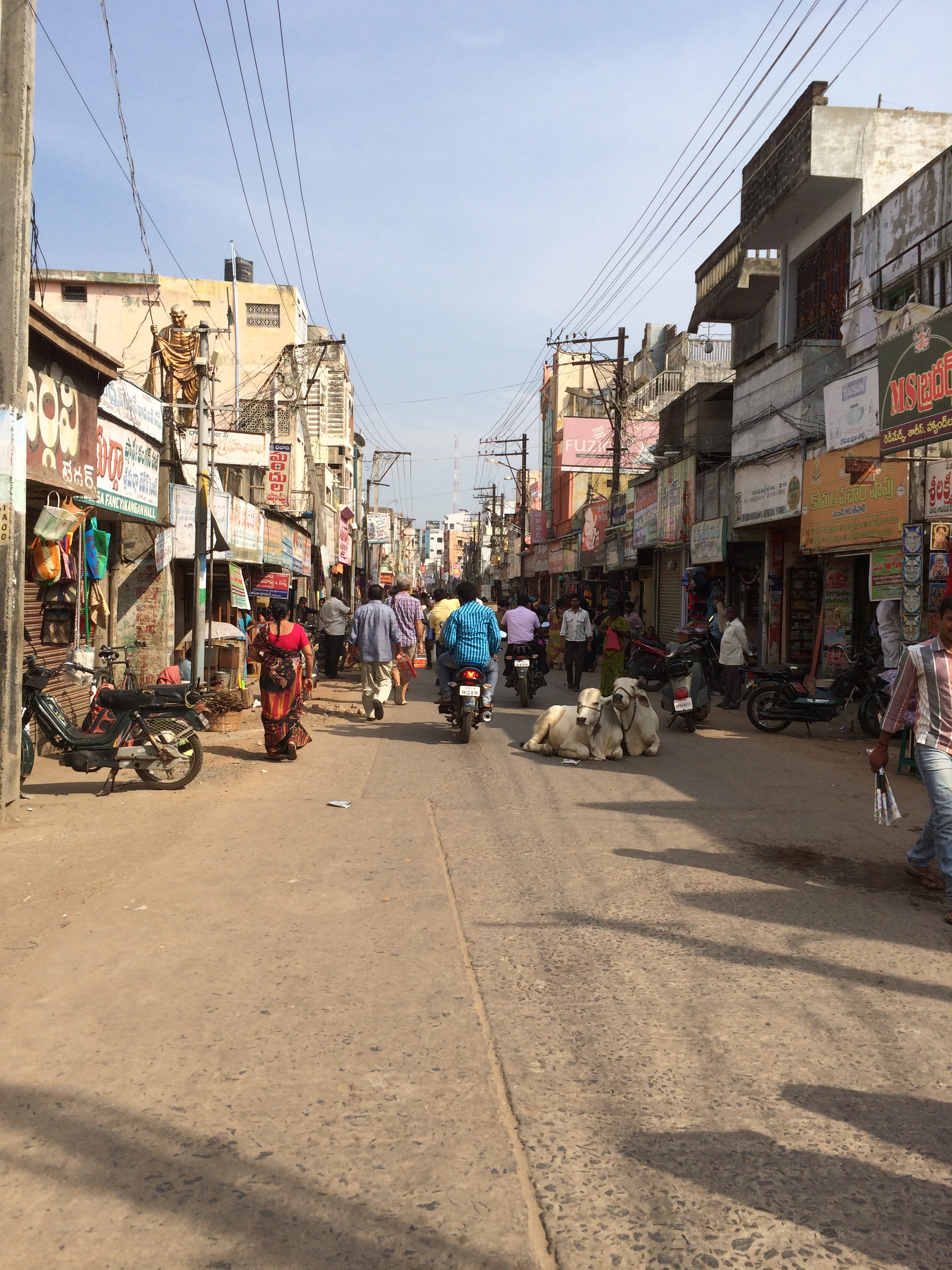 On Friday morning we drove to Tenali (the nearest large town) to buy items for the children. Along the way we saw sacred cows and a silver holy man (pretending to be the reincarnation of Gandhi – begging)