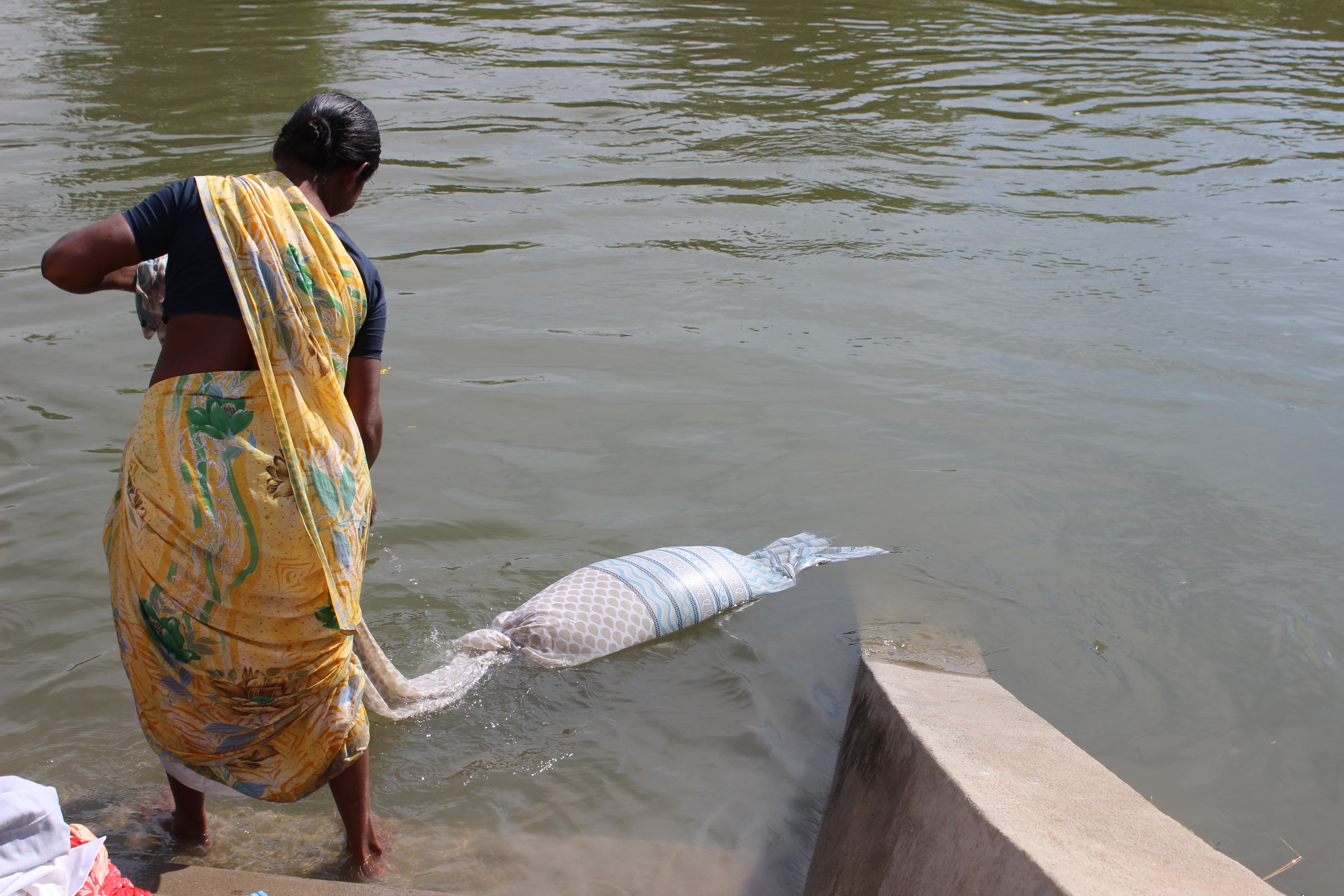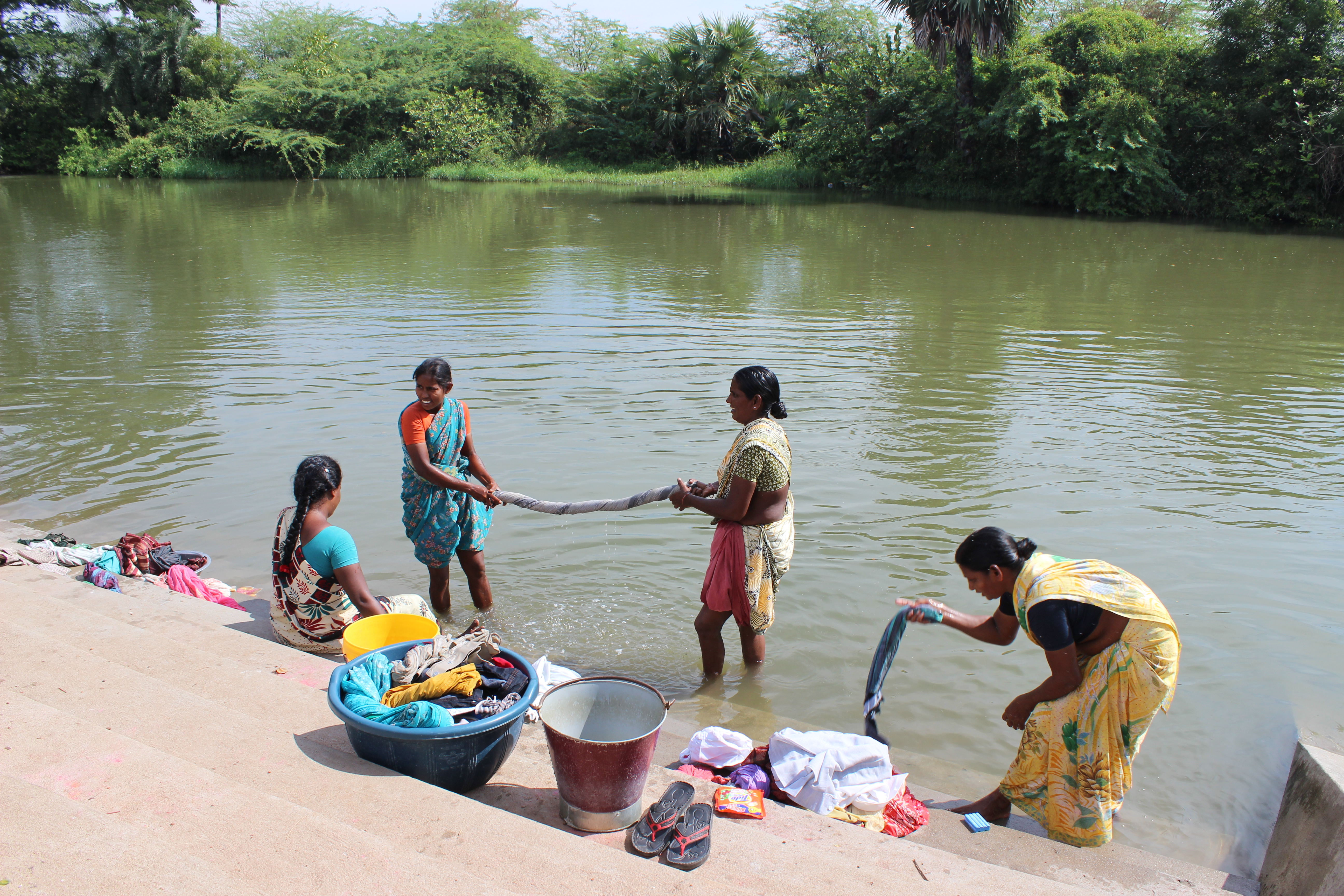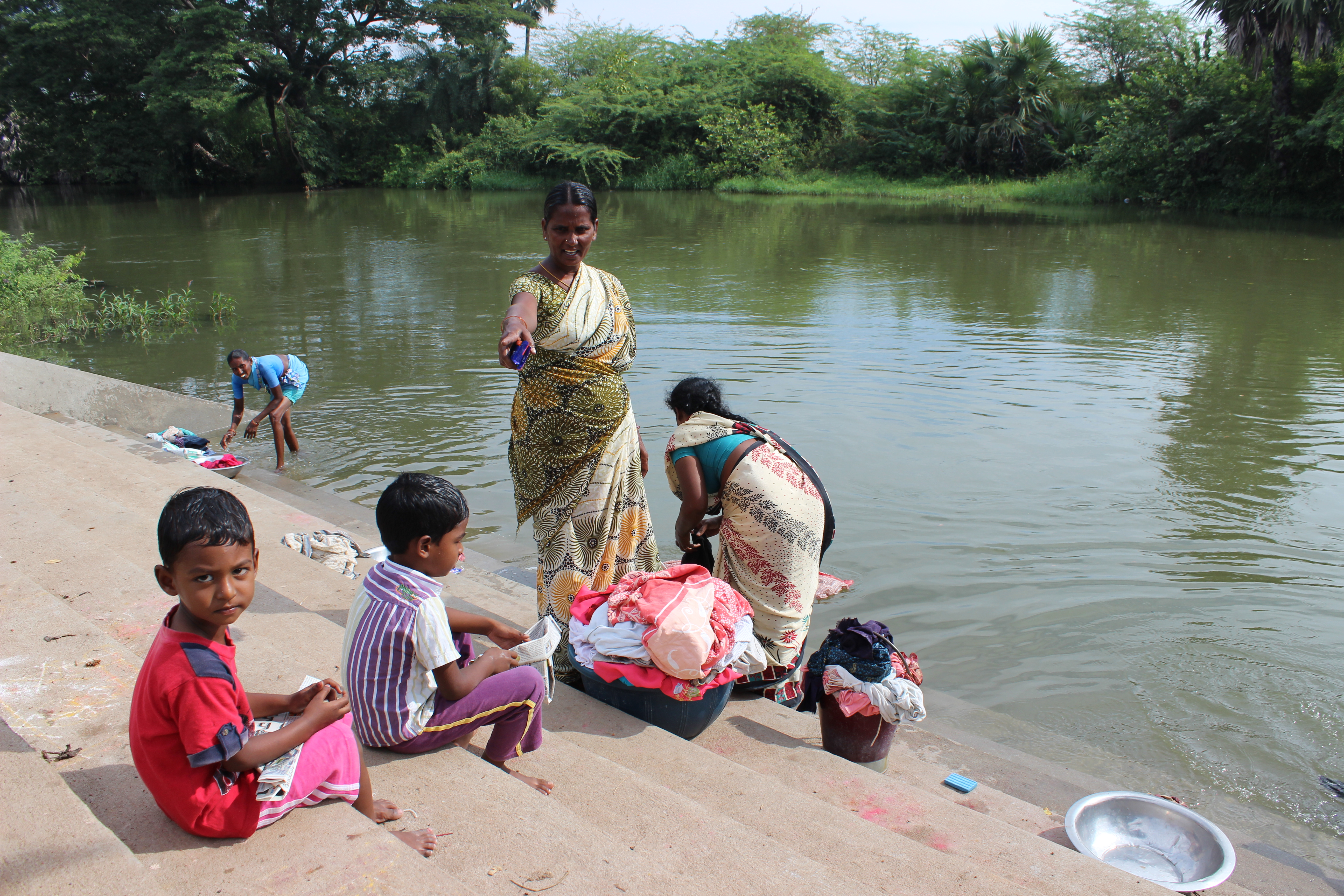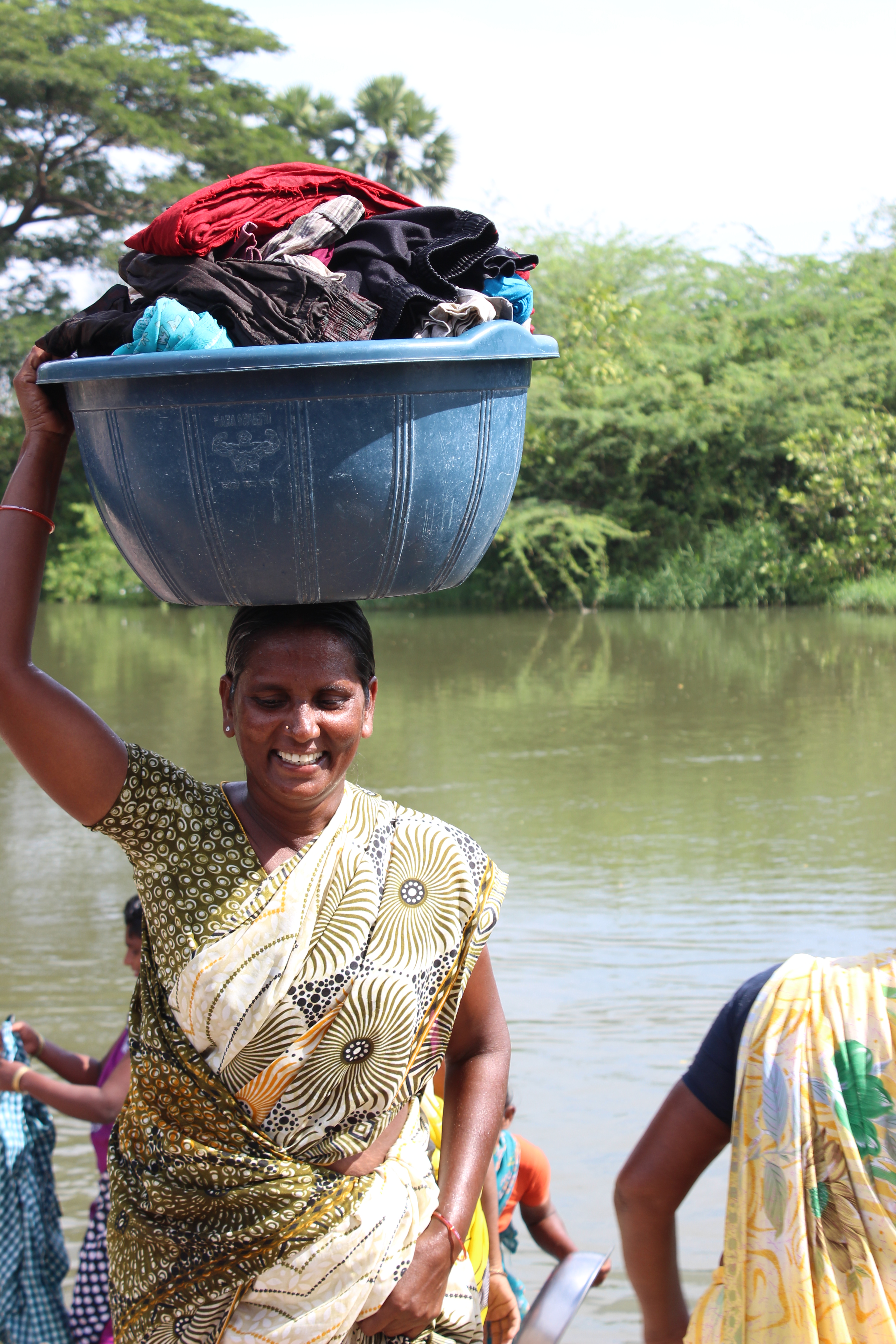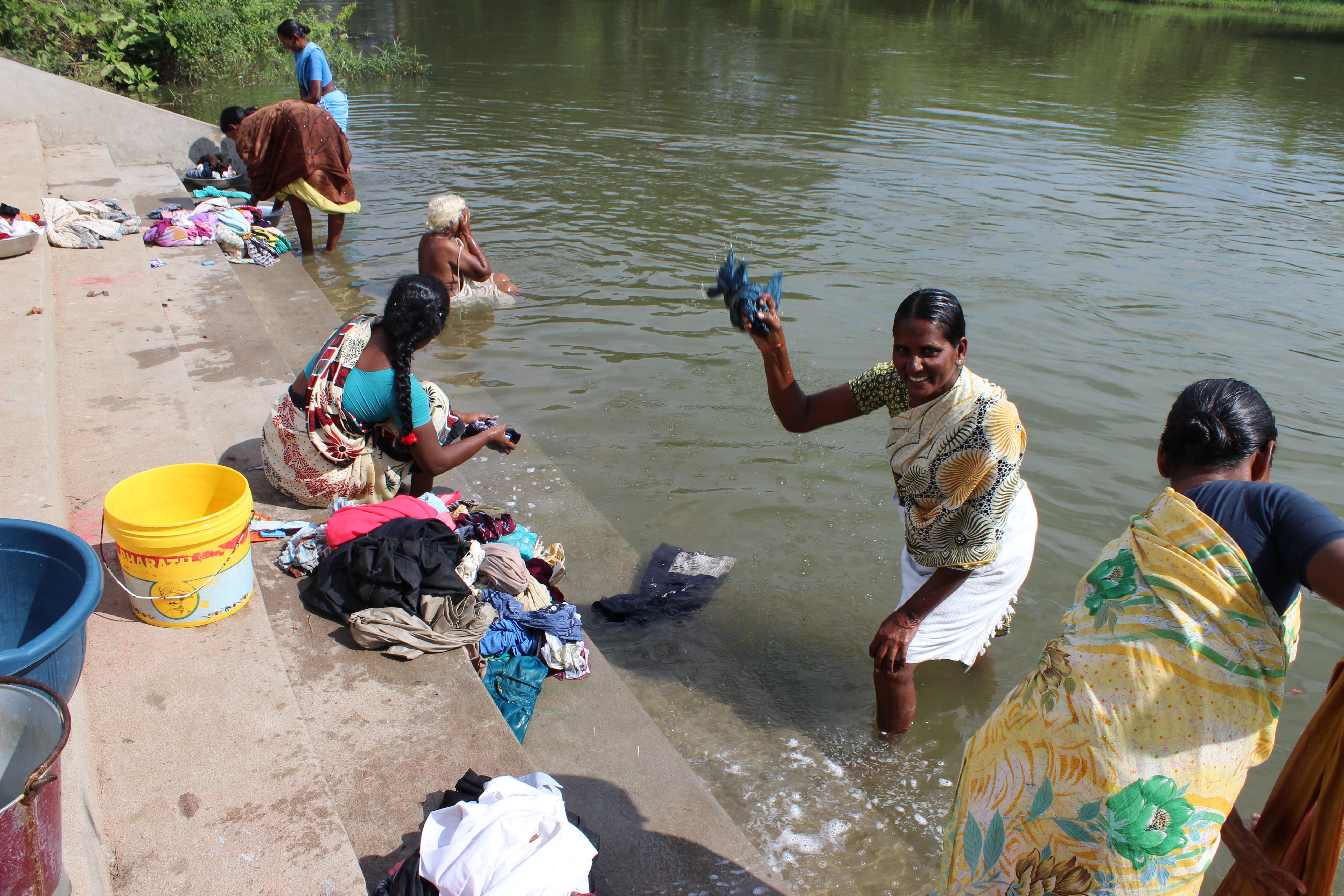 As I entered the courtyard, the first task was evident….. Laundry for 38. Laundry is done regularly and whenever we come into the courtyard the walls are draped in dresses, towels and pants – but Monday is a major wash day so the pile was enormous. We headed down the street to the river where a set of concrete steps into the flowing water serves as the laundromat. They will not let me carry or help but have agreed to let me take photos.