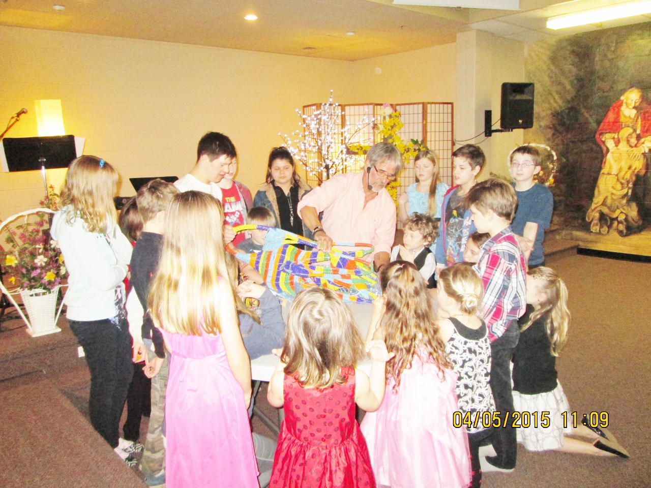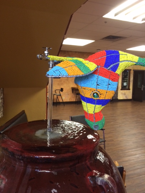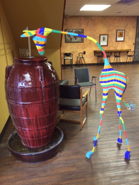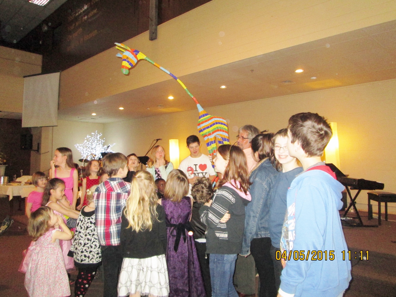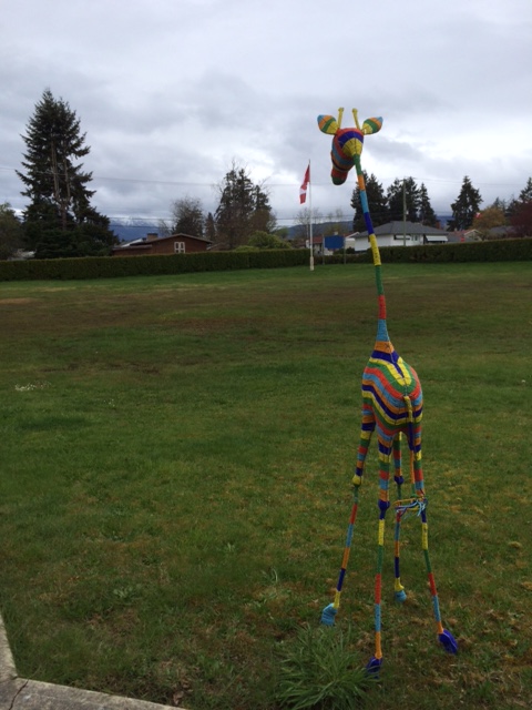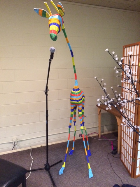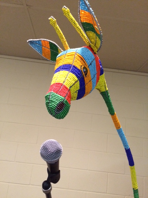 At Cape Town Airport the bundle of wire beads was ‘mummified’ in plastic and sent on its way as a fragile package… all the way to Vancouver Island with Sheryl. I planned to unwrap the ‘object’ on Easter morning as part of my talk with the children about how Easter is a day of surprises. “What do you think this is?” I asked as they gathered around and we began to tear open the package. “Who would have thought it’s an eight foot giraffe all the way from Cape Town – and his name is Jeffrey!” They laughed with delight as his neck unfurled and towered above them, just like a real giraffe.