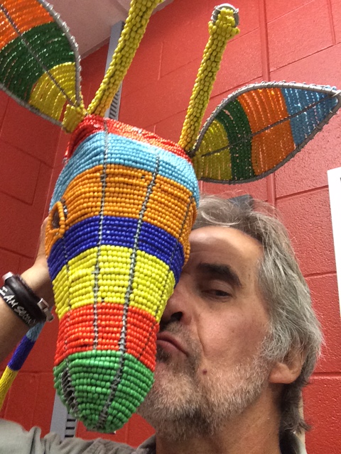 I looked up at the docile beaded face tilted down. “He has no eyes!” I exclaimed. “We can fix that,” responded Mutasa springing into action. He retrieved two large eyes from a box and skillfully inserted them within a beaded frame.