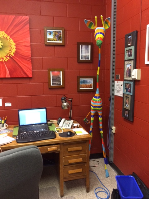 After giving him time to acclimatize Jeffrey now has pride of place in my office. From a sidewalk in Cape Town to a desk job on Vancouver Island. This is one giraffe that’s come a long way and I’m so glad he did.