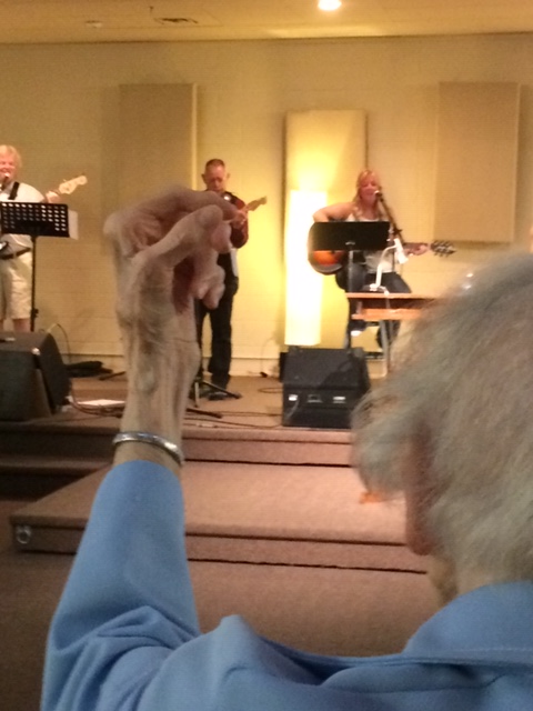 I took this picture of Elfra in worship a few years ago. Never too old or tired to stand and sing “Hallelujah!” to the God she loved and served practically, reliably, and willingly. The song I’ve chosen to end this tribute is a strong and wild declaration led by young men singing about God’s power, presence and resurrection. No song for a harmless little old lady, rather the song of a warrior ready to take ground and do battle. Because that’s who she was from the inside out.