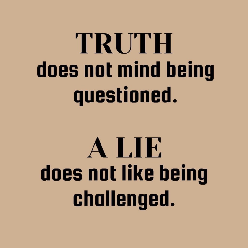 The God revealed through Jesus invites us to say anything, discuss, argue, and wrestle. Truth has no fear, insecurity, or the need to control another. For light to shine, we have to name the darkness. Truth is truth is truth, like gravity to the spirit. There are many opinions but only one truth. Our truth is our opinion, for starters, whether universally valid? That is the challenge.